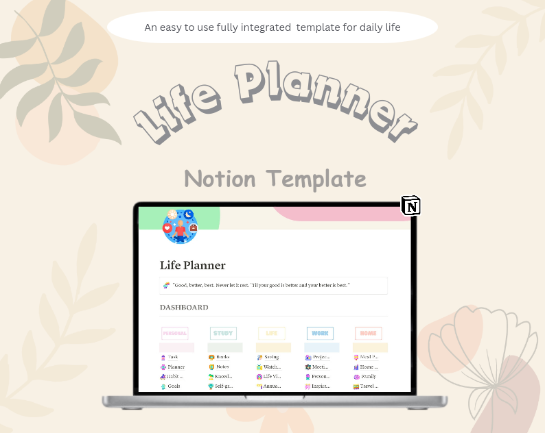 Welcome to your Life Planner, a comprehensive and customizable Notion template designed to simplify and enhance your daily life. Stay organized and focused on your goals with features such as health and wellness tracking, financial management, goal setting, and much more. Access and personalize your planner effortlessly across devices, ensuring your life stays on track.